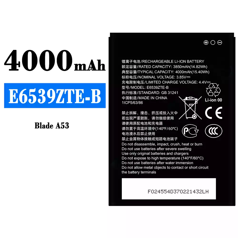 Battery E6539ZTE-B for ZTE Blade A53
